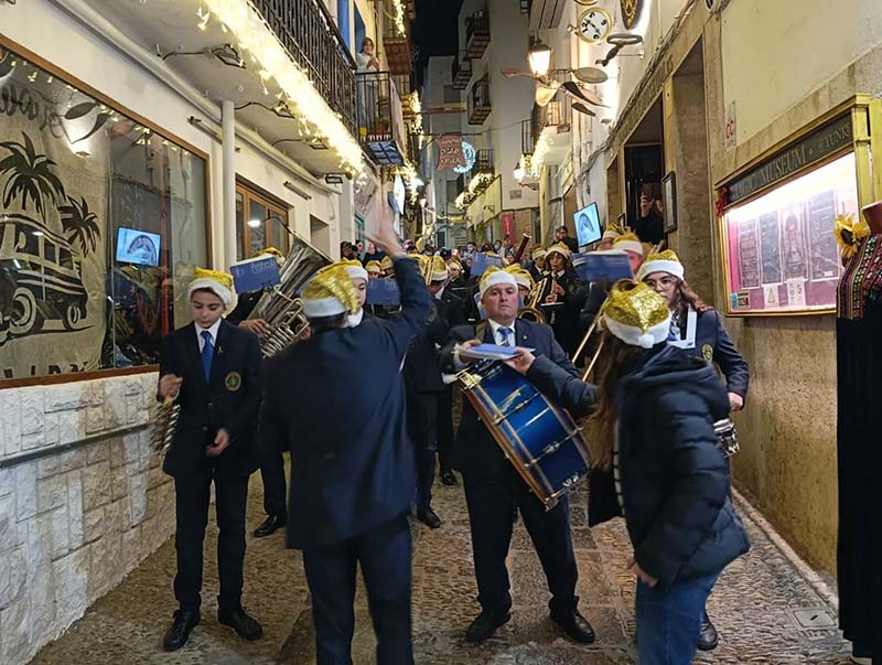 Després de l’ofici religiós, els músics van recórrer diversos punts de la ciutat gaudint i compartint amb els veïns l’ambient festiu i l’enllumenat de Nadal que ja engalana Peníscola. La desfilada va combinar l’esperit nadalenc amb la tradició musical local, marcant l’inici simbòlic de les festes.
