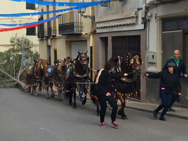 D’aquesta manera, a les 9h i en l’antic ‘Hostal’ tindrà lloc la concentració de cavalls per a anar a buscar el pi, no sense abans, celebrar un esmorzar de pa i porta en l’ermita de Sant Vicent. L’entrada del pi, tirada per cavalls, tindrà lloc a les 12 del migdia i discorrerà pels carrers Basses, Les Parres, Molí, Ermita, Pedrera, Alcalá i finalment faran entrada els cavalls a la plaça Espanya, lloc en el qual es planta la foguera de Sant Antoni.