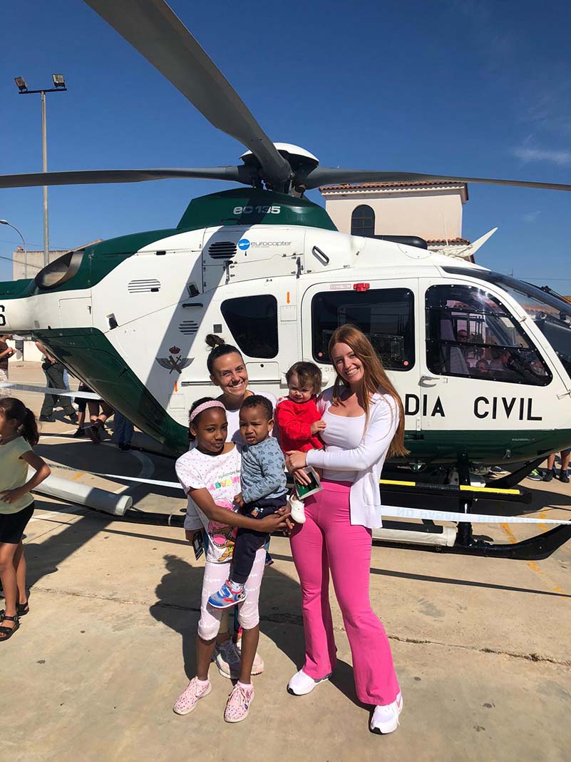 Els més xicotets han gaudit pujant a les motos i cotxes de trànsit, se’ls han pres les petjades, han bufat com si estigueren en un control d’alcoholèmia i també s’han posat alguns dels cascos, que utilitzen les unitats especials de la Guàrdia Civil. Però sens dubte, el moment més emocionant l’han viscut amb l’aterratge de l’helicòpter de la Guàrdia Civil, que en comptades ocasions participa en aquesta mena de demostracions però que en el cas de Santa Magdalena s’ha sumat a l’esdeveniment.