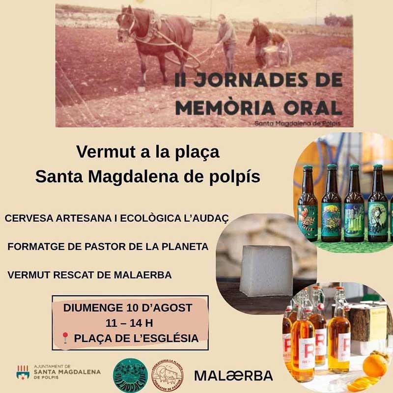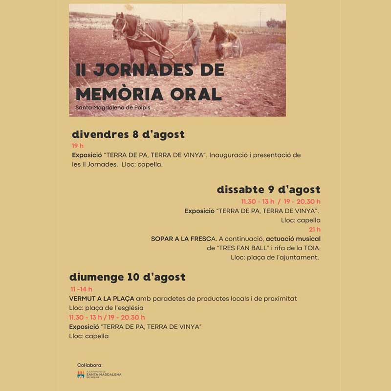 Aquest proper cap de setmana del 9 i 10 d’agost al municipi de Santa Magdalena del Polpís, tindrà lloc la segona edició de la jornada de Memòria Oral.