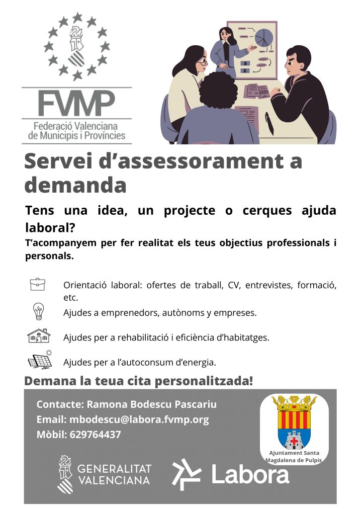 La Federació Valenciana de Municipis i Províncies i LABORA, Servei Valencià d’Ocupació i Formació han tornat a posar en marxa un conveni a través del qual, els municipis de menys de 2.000 habitants podran comptar amb un servei d’assessoria laboral i empresarial.