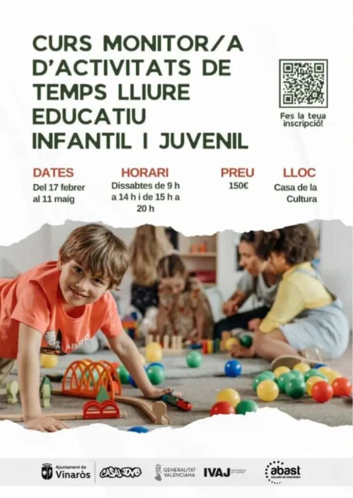 La Regidora de Família, Infància i Joventut, encapçalada per Juanfran Calvo, informa que s’ha obert el termini d’inscripcions per a participar en el Curs de monitori/a de temps lliure educatiu infantil i juvenil. La formació s’impartirà a la Casa de la Cultura els dissabtes en horari de matí i vesprada, des del 17 de febrer fins a l’11 de maig. Destacar que el preu del curs és de 150€.