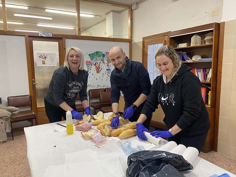 Desde primera hora de la mañana, un grupo de madres y padres voluntarios se ha reunido en la biblioteca del centro para preparar los bocadillos que se han repartido a todo el alumnado. El objetivo: fomentar la solidaridad y contribuir con una buena causa, ya que lo recaudado ha sido destinado a Cáritas.