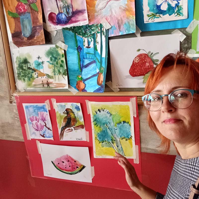 También ha realizado un taller de pintura rápida con los más pequeños que han pasado a visitarla.