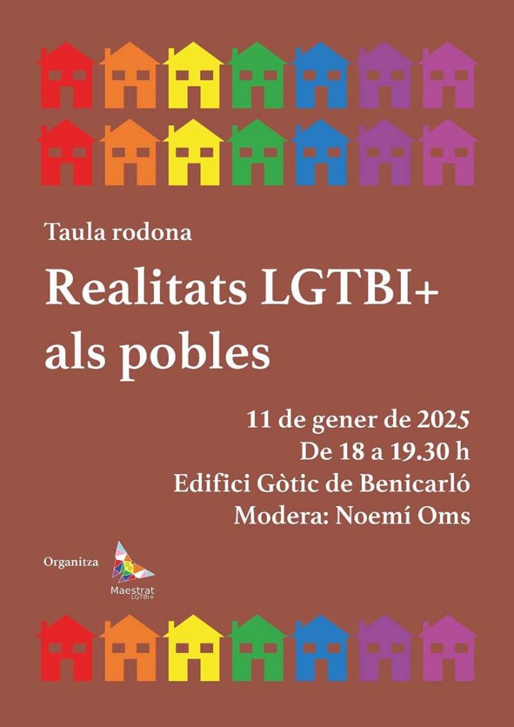 - Demà dissabte 11 de gener, a l’edifici Gòtic de la localitat de Benicarló es realitzarà una taula redona que han organitzat des de l’associació Maestrat LGTBI+.