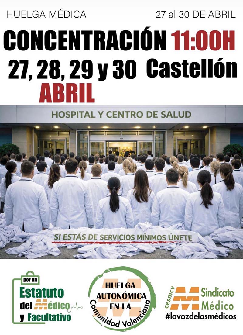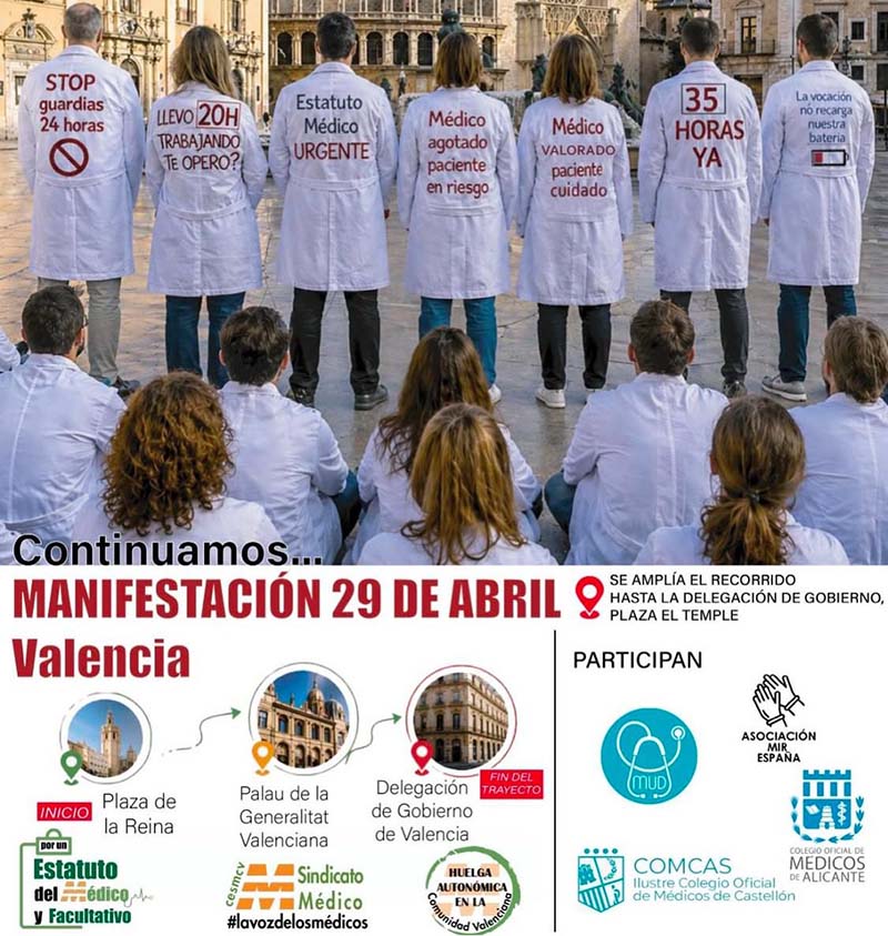 La vaga de metges entra en la seua tercera setmana consecutiva i s’allargarà fins al pròxim dijous 30 d’abril, ampliant-se no només a nivell estatal, sinó també a l’àmbit autonòmic a la Comunitat Valenciana.