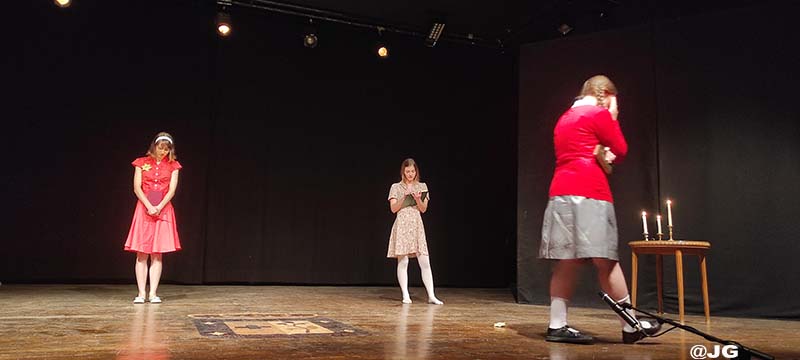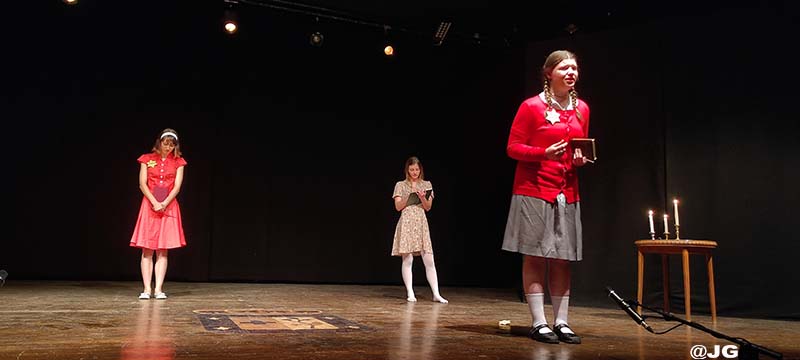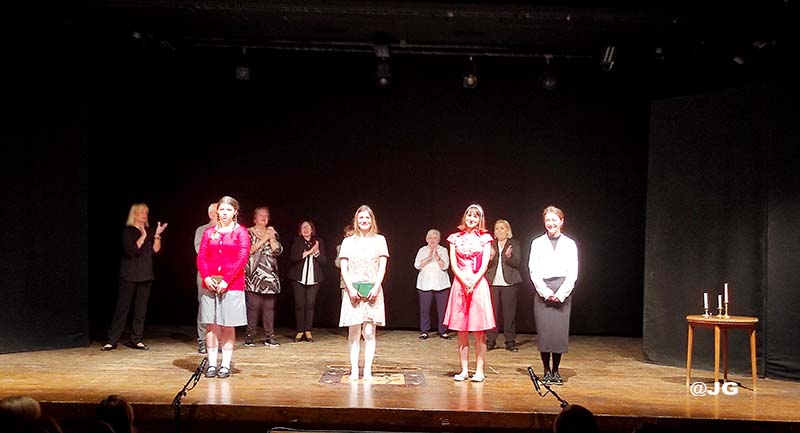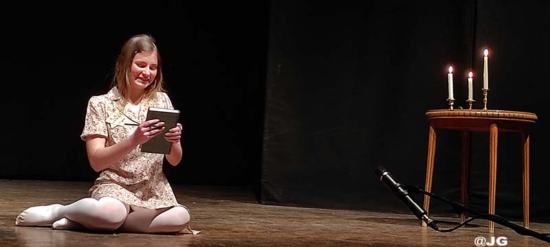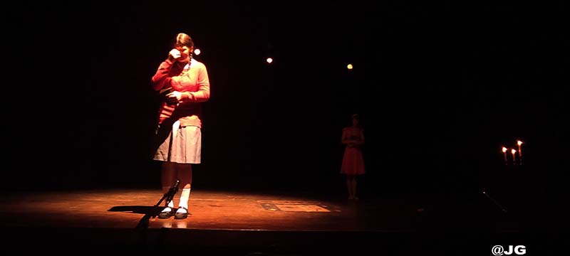 - El pasado domingo 8 de Mayo en el Auditorio Pedro Mercader, La Escalera presenta Testigos de Papel de Josi Ganzenmüller Roig, inspirada en “Adiós a Berlín”, novela de John Isherwood, “La mujer judía”, monologo de Bertolt Brecht y en los Diarios de Eva Heyman, Anna Frank y Miriam-alter ego de David Rubinowicz, Yitzhar Rudashevisky y Moshe Flinker.