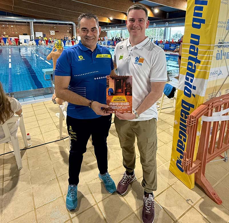 Per la vesprada es feia entrega de l’obsequi al president de la Federació de Natació de la Comunitat Valenciana el Sr. Marco Rivera, agraint la seua assistència a la competició.