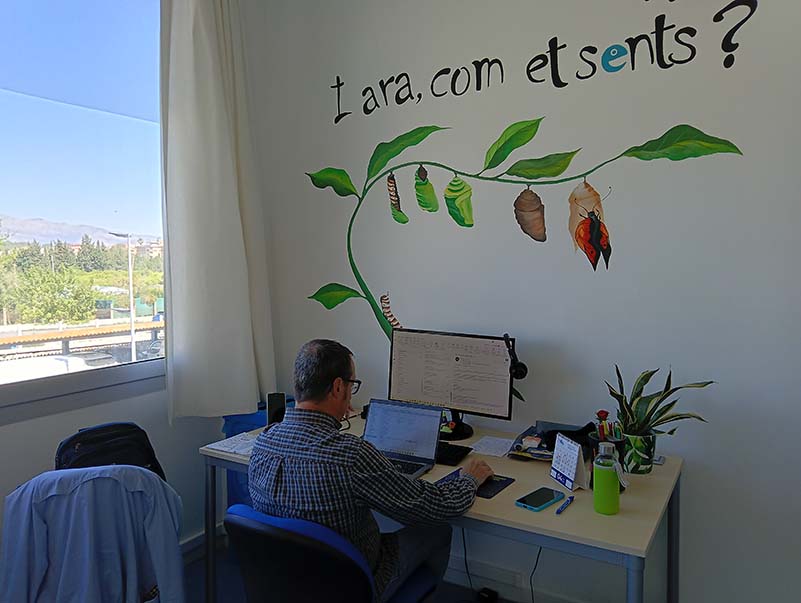La regidora de Promoció Econòmica ha destacat que l’Espai Koiné “és un lloc per treballar amb calma, però envoltat d’energia positiva“. Caballé ha detallat que este espai del viver d’empreses, a tocar de la Via Verda, té capacitat per a vuit professionals, i que ofereix taules de treball individuals amb tot inclòs (connexió, llum, climatització i manteniment), i també accés a sales de reunions, zones de descans i una àrea enjardinada on també es pot treballar a l’aire lliure. De la mateixa manera, també permet l’accés a una parcel·la de l’hort urbà municipal per a les persones usuàries, pensada per fomentar el benestar i la connexió amb la natura. “L’Espai Koiné és molt més que venir a fer hores, és formar part d’un projecte comunitari que creu en les idees compartides“, ha conclòs la regidora.