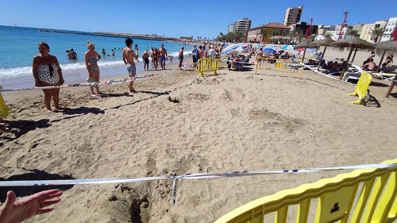 Aquest matí voluntàries guardaven la zona on hi ha alguns llocs on ha pogut deixar la tortuga la seua prole, davant la curiosa mirada dels banyistes. Ampliarem informació a la propera revista.