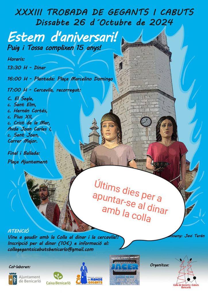 El pròxim dissabte 26 d’octubre, a la població de Benicarló se celebrarà l’aniversari dels gegants Tossa i Puig.