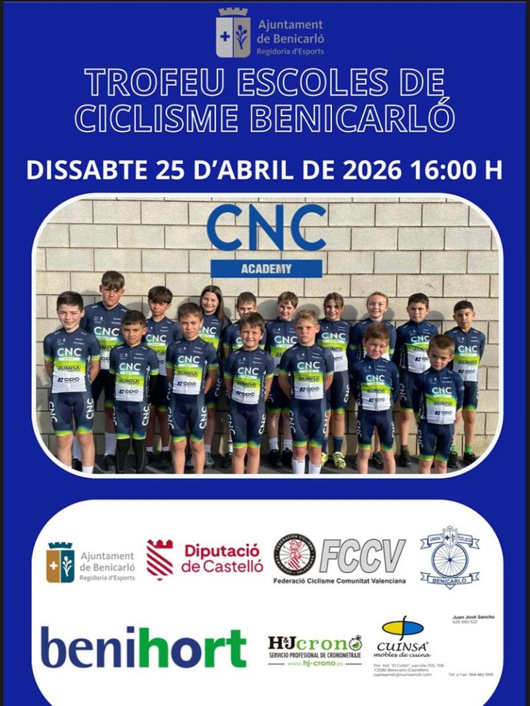 A les 16.30 hores, Benicarló acull el Trofeu Escoles de Ciclisme, una cita destacada per a la base del ciclisme i per a l’esport local.
