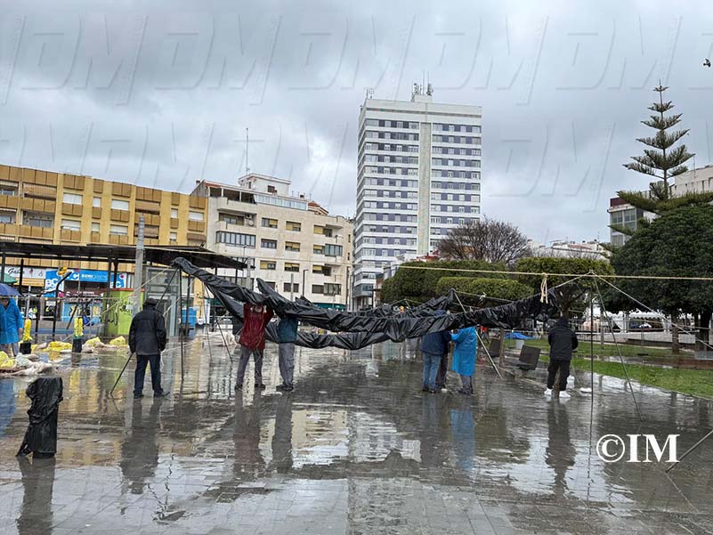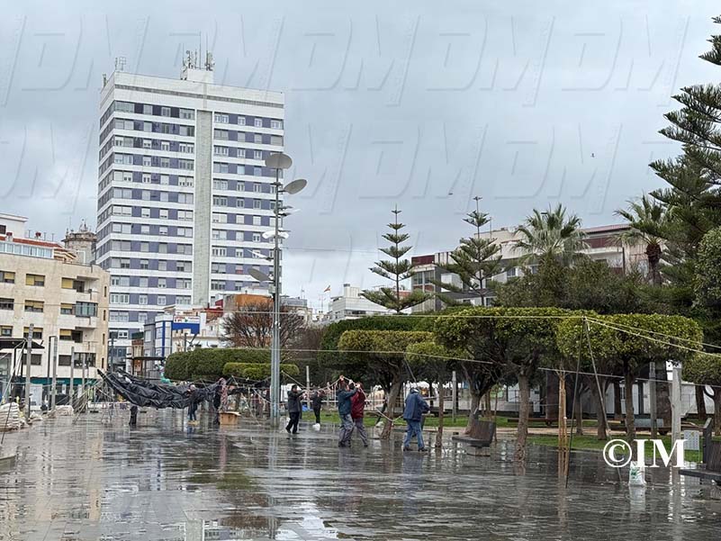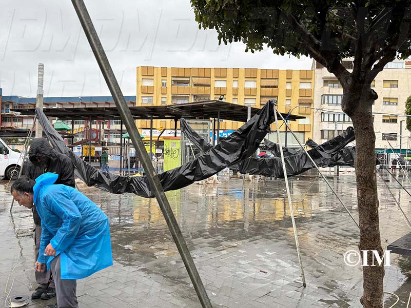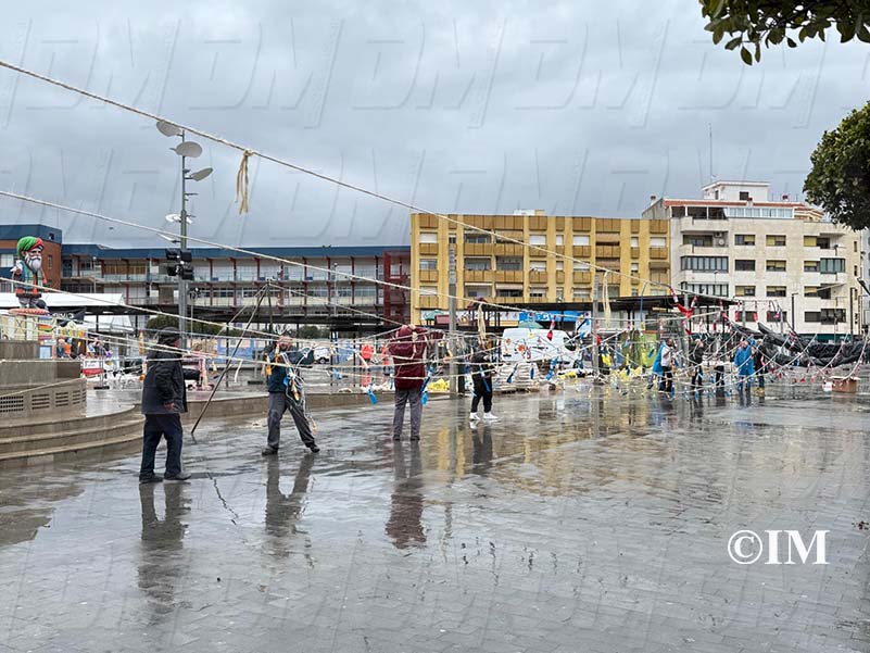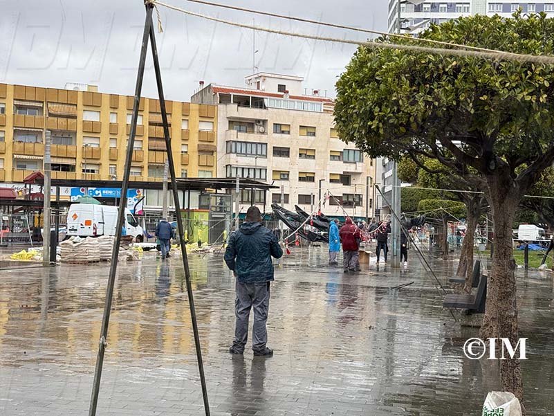 Tot i la pluja Pirotècnia Tomàs prepara la tercera mascletada de les falles de Benicarló