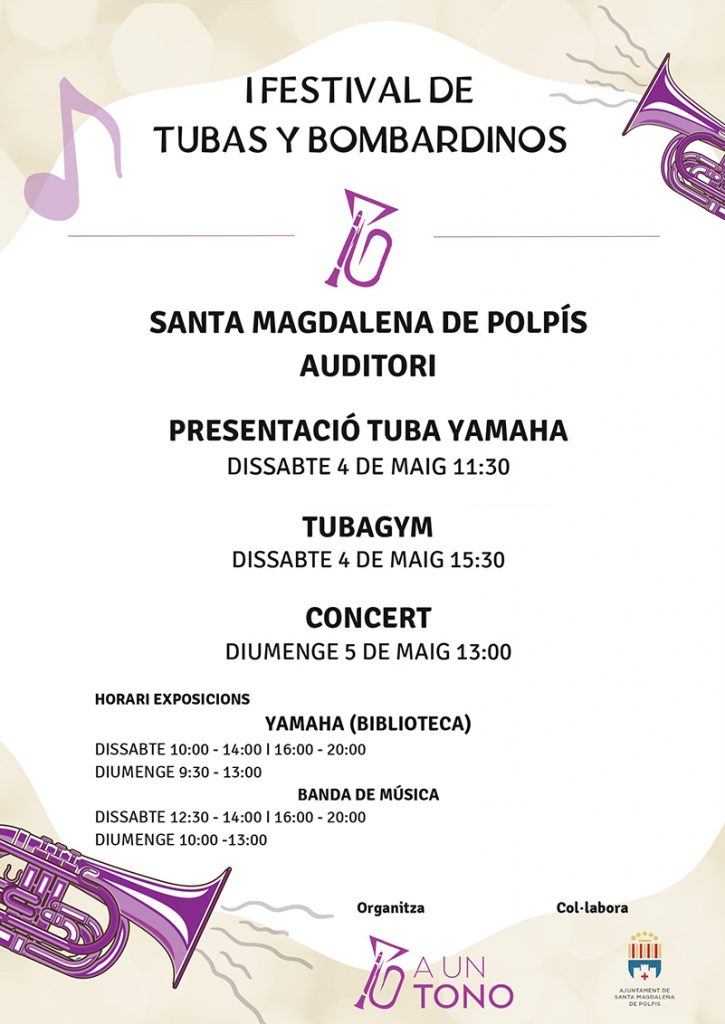 Es tracta d’un cap de setmana inoblidable per als amants de la tuba i el bombardí, en el qual podran trobar una infinitat d’activitats enfocades a tots els públics: estudiants, músics amateur o professionals de l’instrument.
