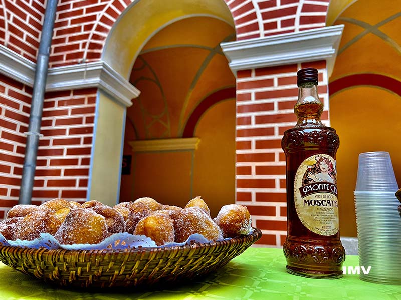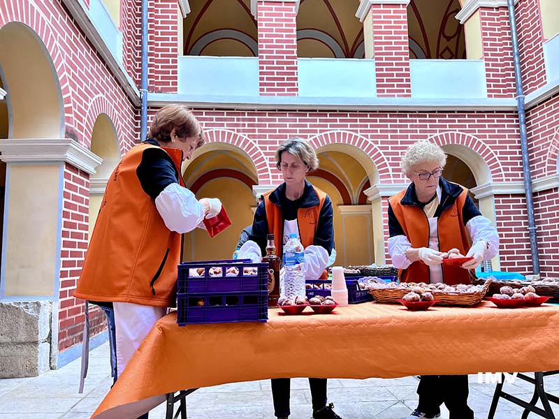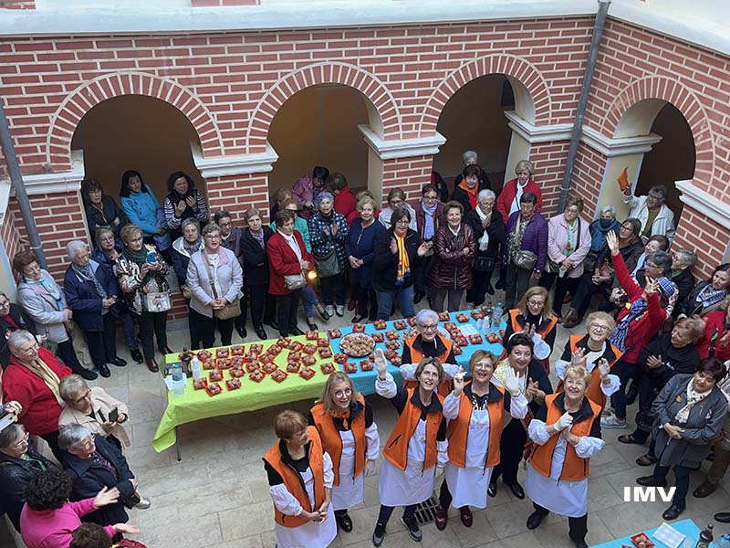 Es van concentrar a la capella del mucbe, mentre les dones de la junta preparaven al claustre del mateix els bunyols que acabaven de fer, acompanyats de moscatell i aigua. Una vegada, estava tot preparat, es van concentrar al claustre, on van sentir l’himne regional de la Comunitat Valenciana i seguidament van degustar el mes de 700 bunyols que en tant d’amor van realitzar les dones de la junta. Va estar present la dama de l’entitat….