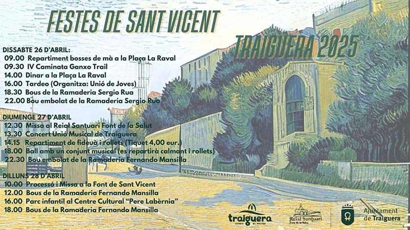 - Compartim amb vosaltres la programació per a les festes de Sant Vicent de Traiguera 2025.