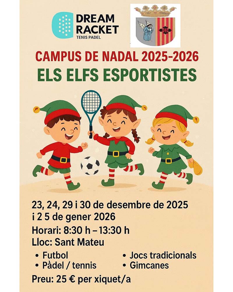 🎾 Activitats: futbol, pàdel, tennis, jocs tradicionals i missions especials com a “elfs esportistes”.