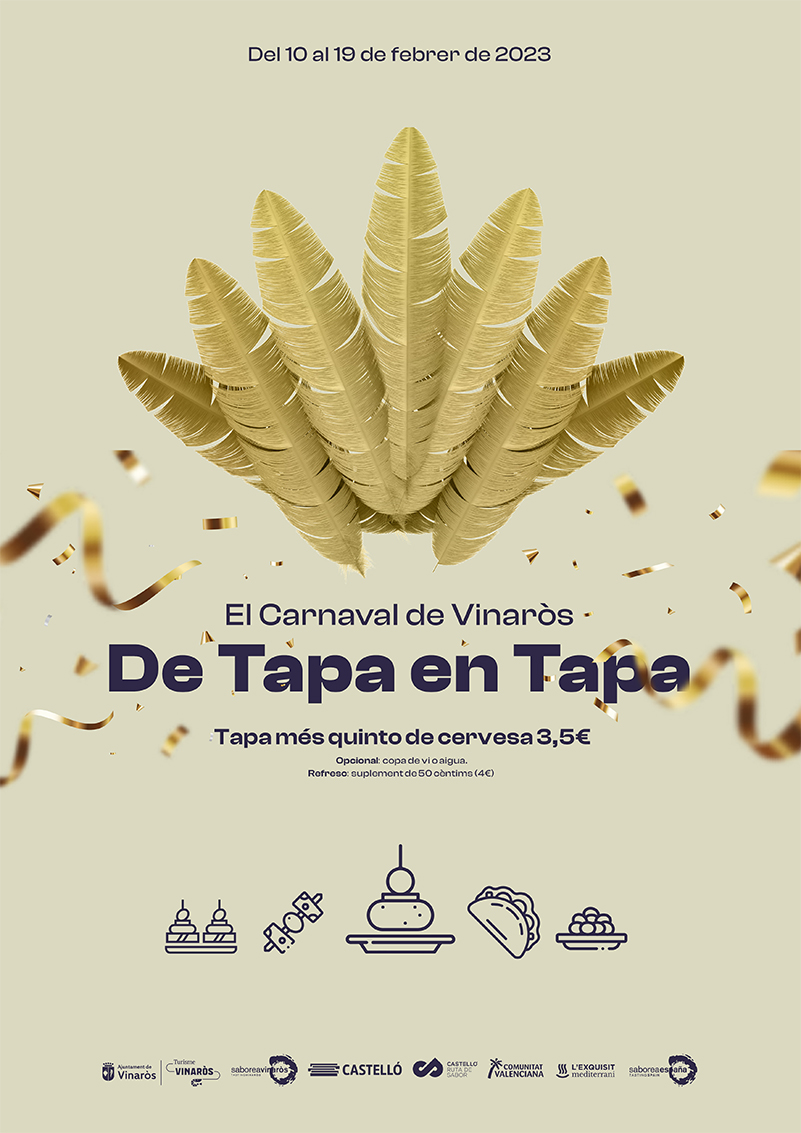Pel que fa a la gastronomia, del 10 al 19 de febrer s’oferirà Vinaròs de Tapa en Tapa. Edició Carnaval, amb la participació de 24 establiments. Cadascun d’ells ha preparat propostes úniques i originals per a sorprendre als comensals amb el preu de 3,5 acompanyada de cervesa, copa de vi o aigua, també si es desitja es podrà demanar un refresc per 0,50€ més. Albella assenyalava que “Vinaròs de Tapa en Tapa és una cita gastronòmica consolidada al municipi i en aquesta edició especial es vol oferir un nou atractiu als veïns i visitants, al mateix temps que també s’ajuda a dinamitzar l’economia”.