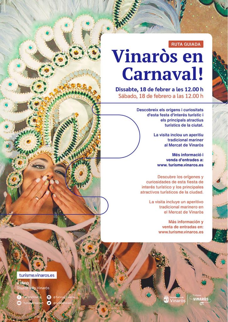 En relació a la visita guiada, es farà el dissabte 18 de febrer per mostrar els orígens i les curiositats del Carnaval a Vinaròs, a més de donar a conèixer els principals atractius del municipi. Cal destacar que també s’inclourà un aperitiu tradicional mariner al Mercat de Vinaròs. En aquest cas, el regidor Albella comentava que “les inscripcions es poden realitzar al web de Turisme Vinaròs, amb un límit de 35 places, però si rebem una gran demanda podríem arribar fins a les 70 amb formació de dos grups”.