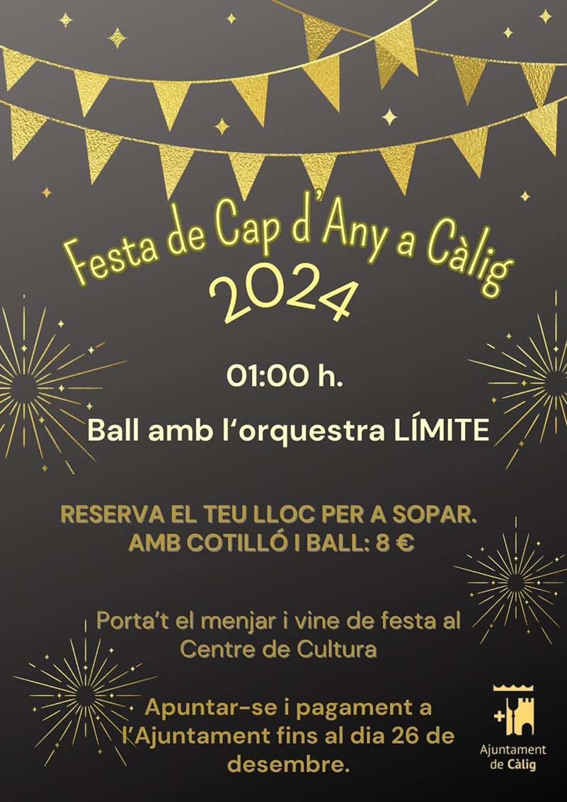 A la nit, en finalitzar les campanades que donaran la benvinguda l’any 2024. Primera festa de ball amb l’orquestra LÍMITE, a partir de la 1:00 de la matinada.