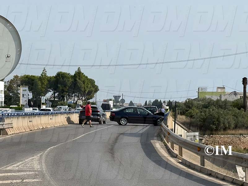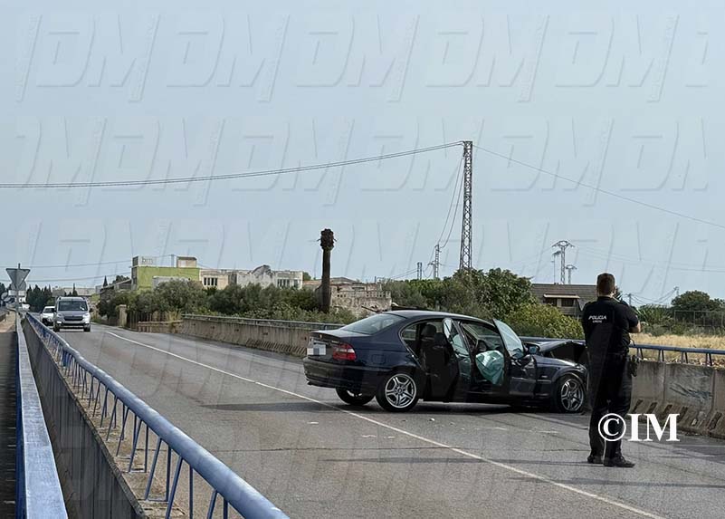 Al rededor de las 11:00 horas del viernes 3 de octubre un joven que conducía por la vía de servicio dirección a Vinaròs, ha perdido el control y se ha estampado contra las barreras de hormigón del puente de la Rambla de Cervera.