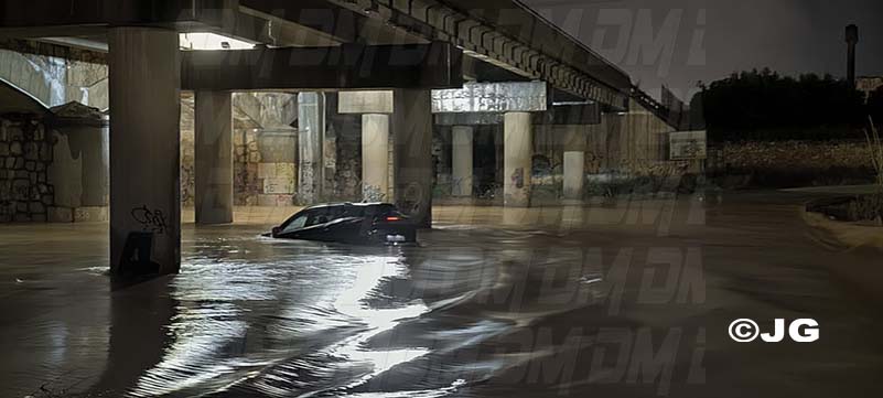 Un vehicle ha intentat travessar la rambla de Cervera al seu pas per Benicarló durant la vesprada-nit d’aquest divendres, 6 de març, i ha quedat atrapat al mig del llit del riu.