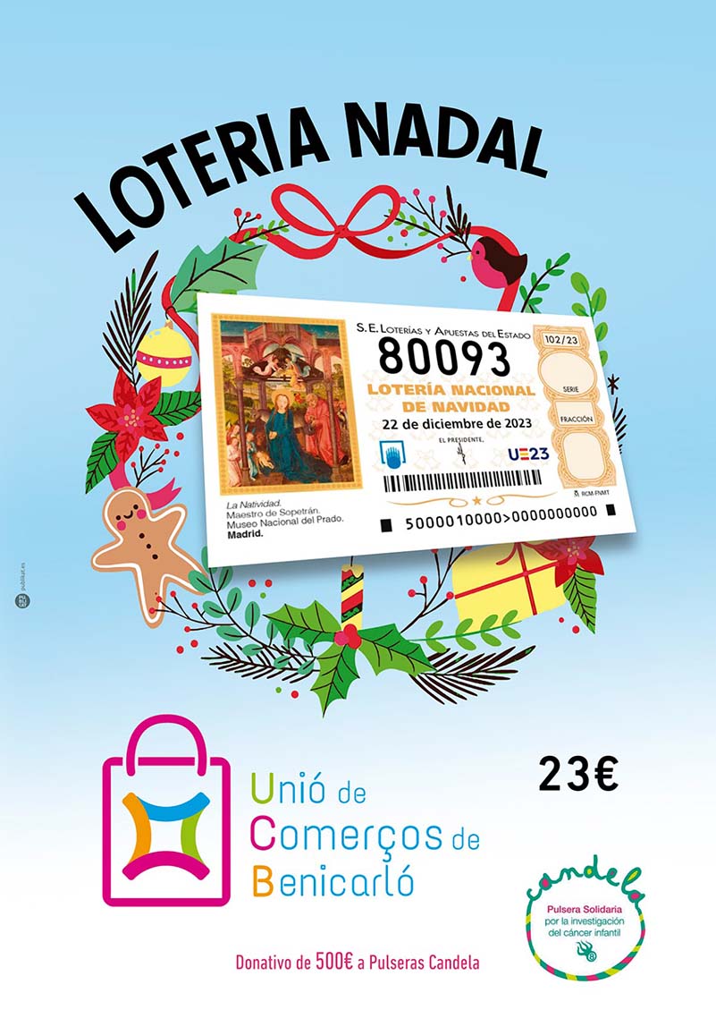 - Cada any, la Unió de Comerços de Benicarló, es dediquen a vendre loteria de Nadal per recaptar fons ia més, fan sorteigs per a tots aquells ciutadans que s’acosten a les botigues a comprar.