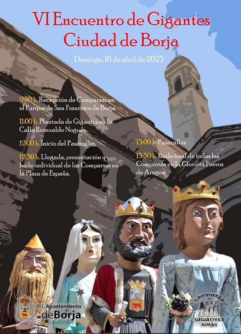 • El cap de setmana del 15 i 16 d’abril, Borja va ser l’amfitrió del “VI Encuentro de Gigantes Ciudad de Borja”, una festa popular que va portar molta alegria i color a la ciutat. La rebuda dels visitants per part de la colla amfitriona i autoritats va ser excel·lent, i la gent de Borja ens va acollir amb els braços oberts, demostrant la seva hospitalitat i bon humor.
