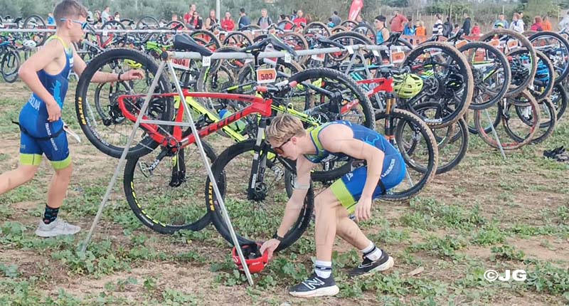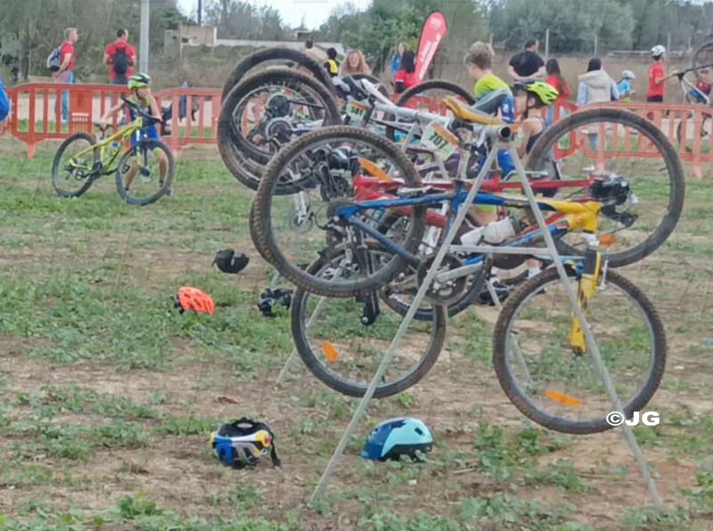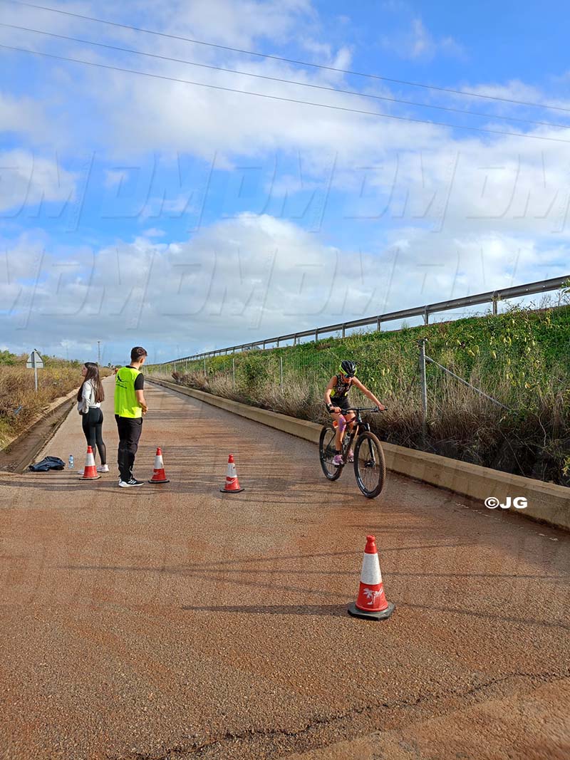 - Para entrar en el área de transición, se realizará el control de material, se comprobará que se lleve puesto el dorsal de carrera con portadorsal que traerá el participante, el dorsal, la bici con su dorsal, el casco ajustado y deberá presentar el DNI o Licencia Federativa.
