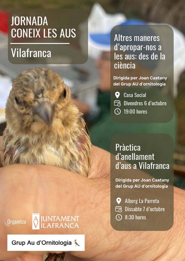 Joan Castany és un doctor en Biologia amb un gran bagatge en estudis d’aus arreu la província de Castelló. Actualment, està instal·lat a Vilafranca fent un dels seus estudis i anellaments sobre les aus d’aquest territori. El primer cap de setmana d’octubre, veïns i veïnes de Vilafranca podran gaudir del coneixement d’aquest biòleg, que endinsarà els participants en aquest món.