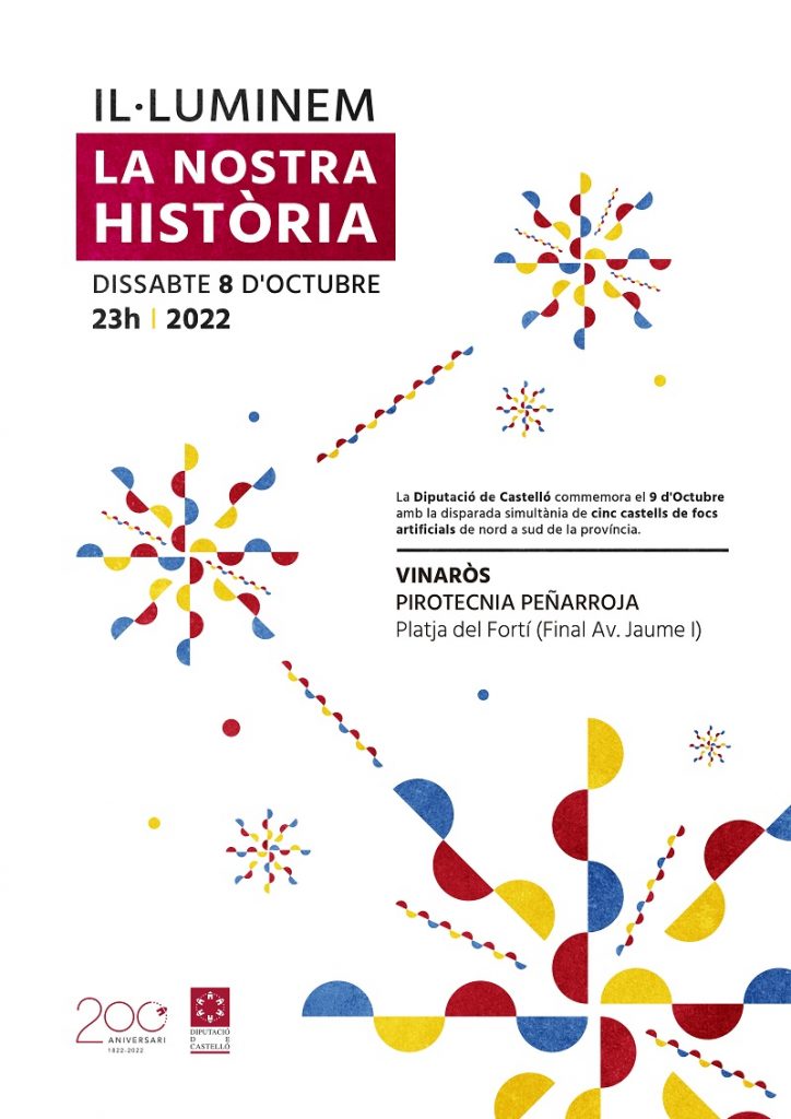Vinaròs ha sigut un dels cinc municipis escollits per la Diputació de Castelló per acollir un gran castell de focs artificials amb motiu de la commemoració del 9 d’Octubre. Aquesta proposta va néixer fa dos anys amb la finalitat de donar suport al sector pirotècnic de la província, afectat per la crisi econòmica de la Covid-19, i enguany des de la Diputació s’ha decidit repetir de nou l’experiència gràcies a la bona acollida que es va aconseguir.