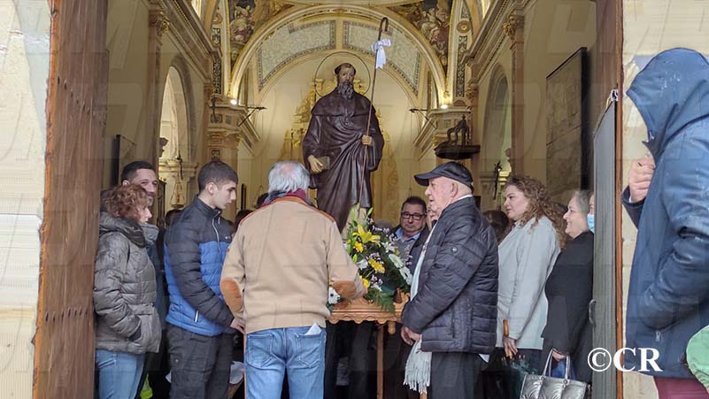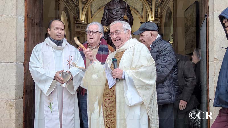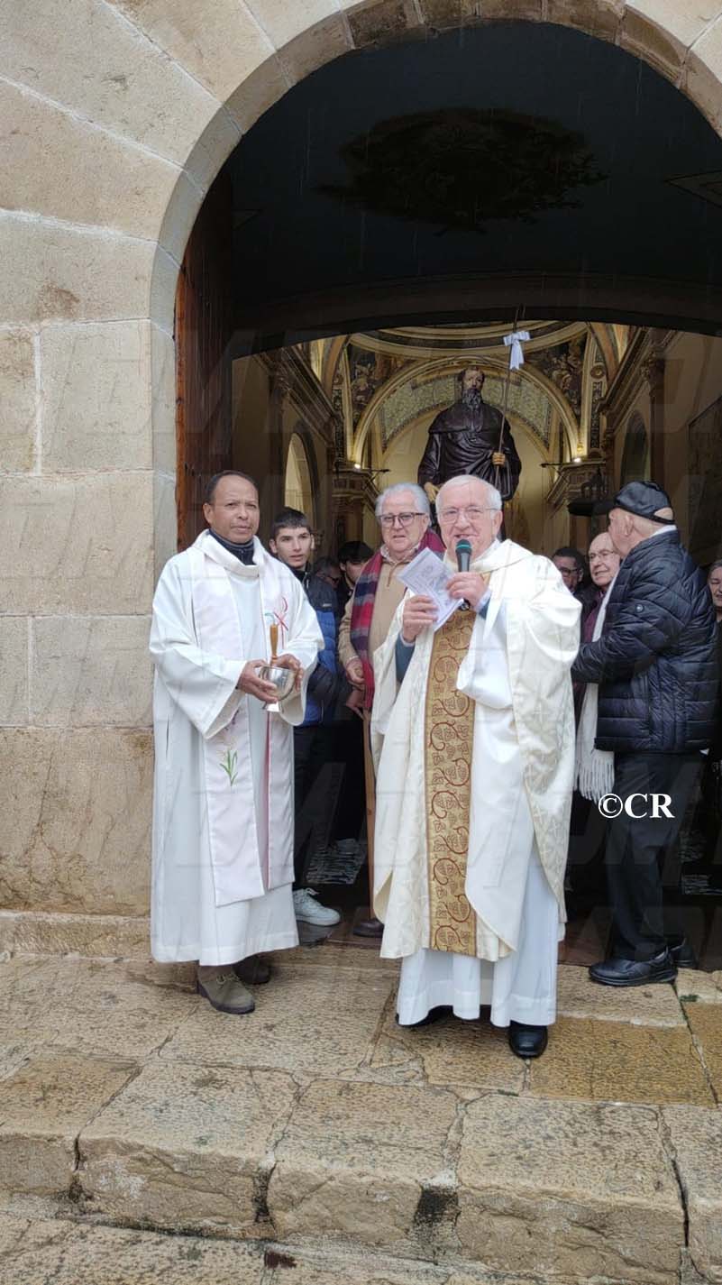 A continuació, s’ha realitzat una benedicció general a la sortida de l’Església, com a conseqüència de la forta pluja que ha caigut tota la jornada, que ha obligat a suspendre la tradicional beneïda dels animals. També s’ha suspès la tradicional plantada de carrasques.