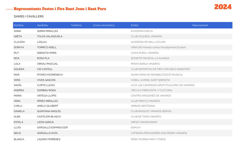 Un total de 21 reines i cavallers adults representaran les festes, us deixem a continuació el llistat: