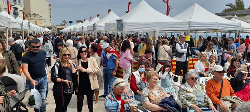 Vinaròs està avui de plena celebració de la XXI edició de la Fira del Llibre. Una gran cita cultural cada any més participativa que està tenint lloc al passeig marítim amb 60 parades entre entitats culturals, llibreries, editorials, floristeries i institucions i uns 40 autors del territori firmant les seues obres, a més d’una molt àmplia programacio per a tots els públics.