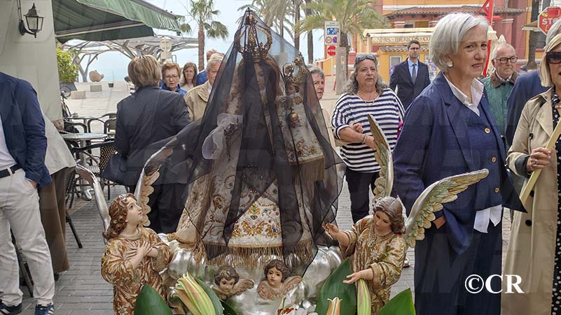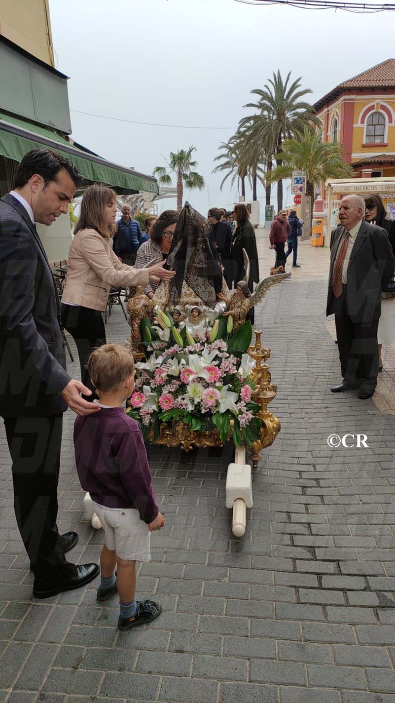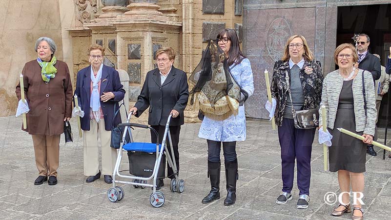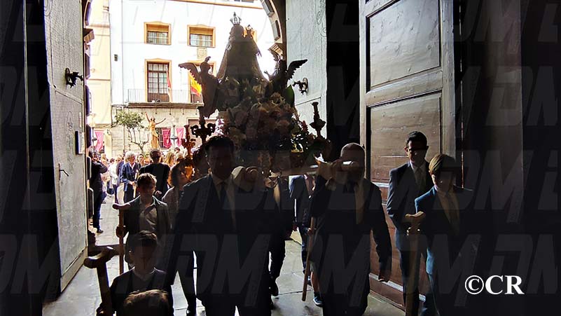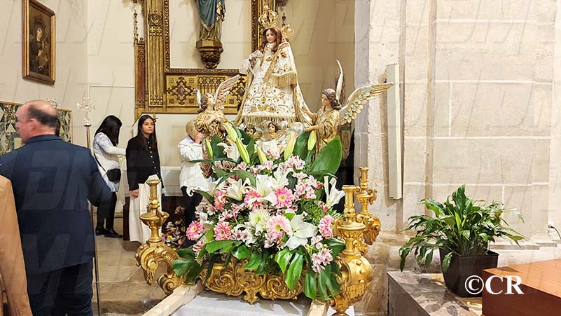 La Verge ha estat acompanyada per les Camareres de la Verge, la Federació de Confraries de la Setmana Santa i la banda de Cornetes i Tambors de San Pedro, entrant per la Placa Sant Valent pel carrer Sant Tomàs.