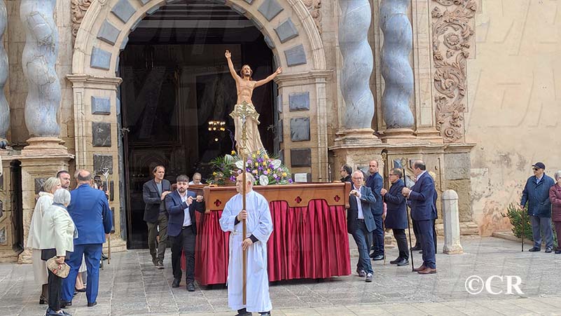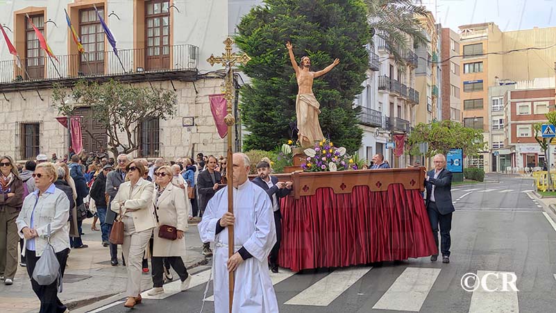 A les 10:30 ha sigut el torn de l’eixida de la imatge de Jesucrist Ressucitat de l’Església Arxiprestal. Ha recorregut la Plaça Parroquial i el carrer Sant Cristòbal fins arribar a la Plaça Sant Valent.