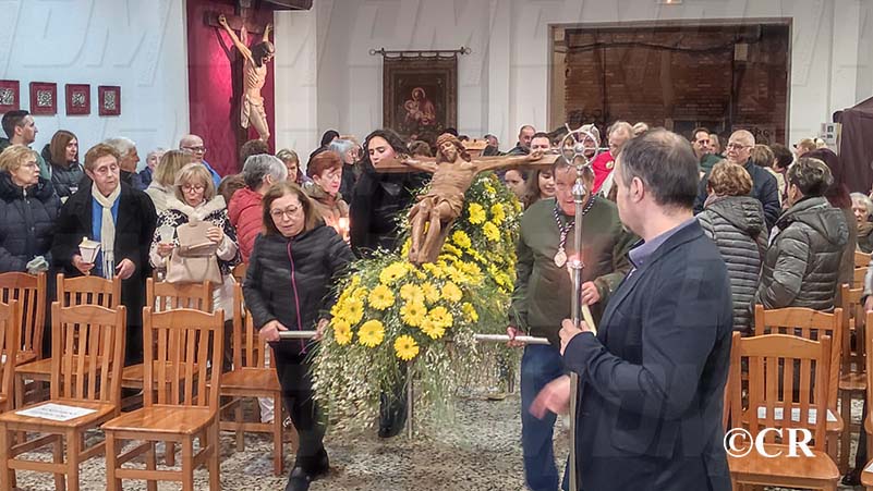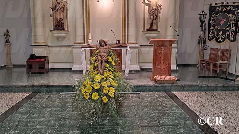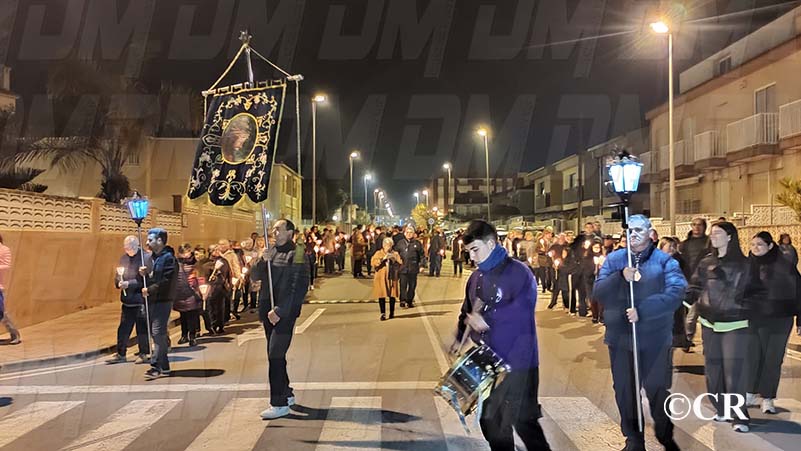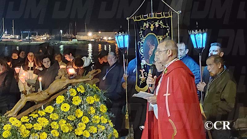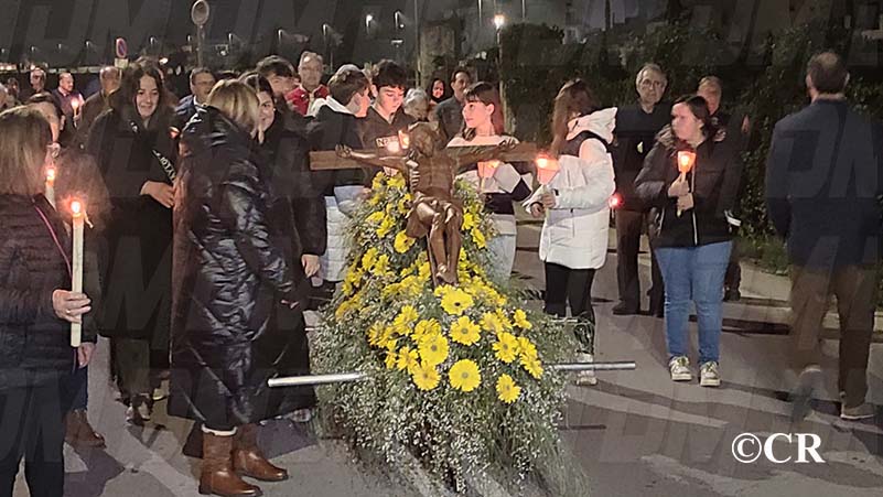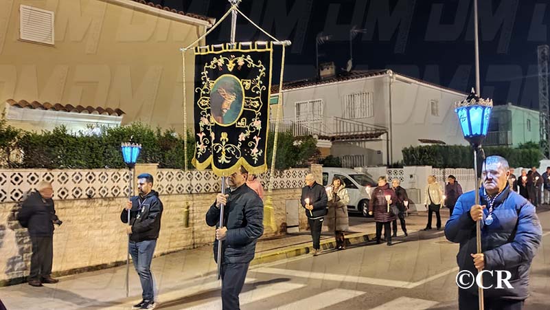 150 feligresos van acompanyar al Crist des de la Capella del Carme fins a la Platja dels Pinets, al costat del monument de les 7 Paraules, lloc on es va realitzar l’oració del Pare Nostre, el Credo, i els darrers moments de vida de Jesucrist, en un ofici realitzat pel mossèn Carlos París.