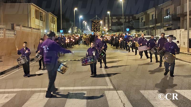 Durant tot el recorregut, la Banda de Bombos i Tambors de la Confraria del Crist dels Mariners va realitzar l’acompanyament musical.