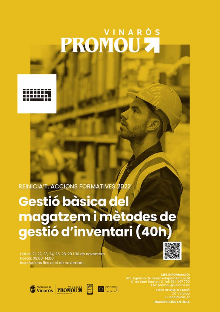 Per tal d’aconseguir aquests objectius s’han programat dos cursos per als mesos d’octubre i novembre dintre de la iniciativa Reinicia’t de Vinaròs Promou. El primer serà Formació bàsica en cures per a persones dependents, amb una durada de 30 hores, que s’impartiran els dies 17, 19, 21, 24, 26 i 28 d’octubre. Les inscripcions es podran realitzar fins al 10 d’octubre. El segon curs serà Gestió bàsica de magatzem i mètodes de gestió d’inventari, amb una durada de 40 hores, que s’impartiran del 21 al 30 de novembre. Les inscripcions es poden formalitzar fins al 14 de novembre.