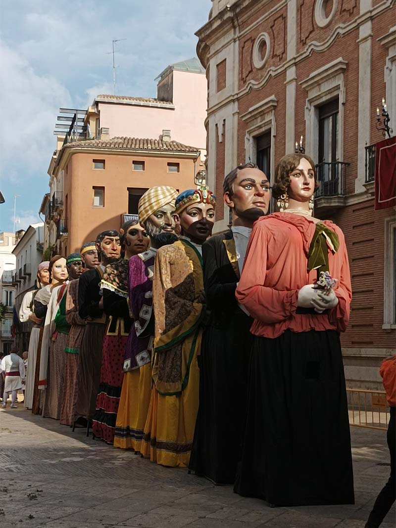Dos geganters vinarossencs han participat a la cercavila del Corpus de València 2023 convidats per la Jove Muixeranga de València.