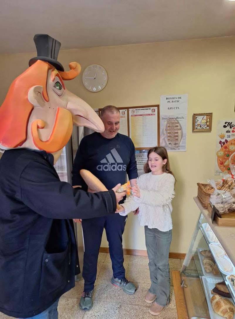L’Home dels Nassos, fidel a la tradició, ha tornat com cada any a visitar i ha repartit bona ració de dolços a tota i tot aquell que se li ha apropat, visitant també els comerços locals per a desitjar una bona entrada d’any.