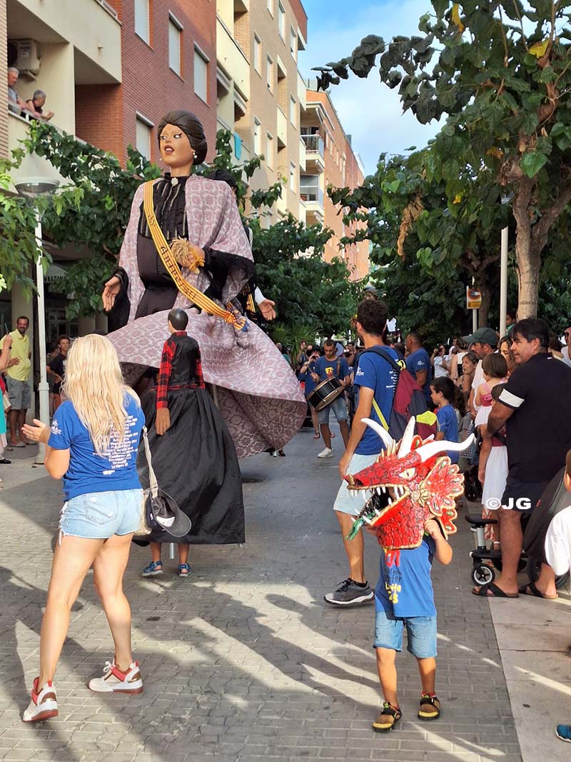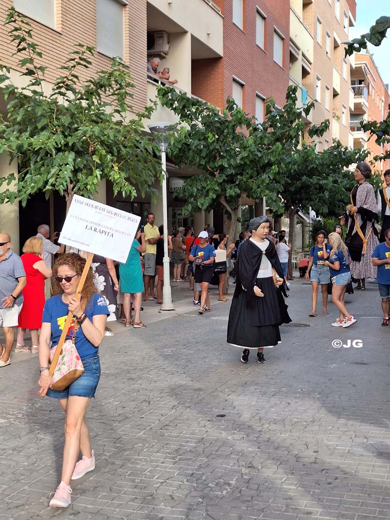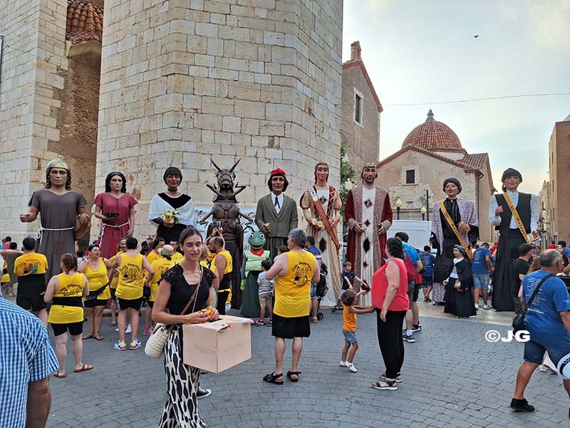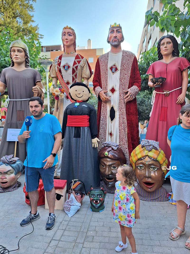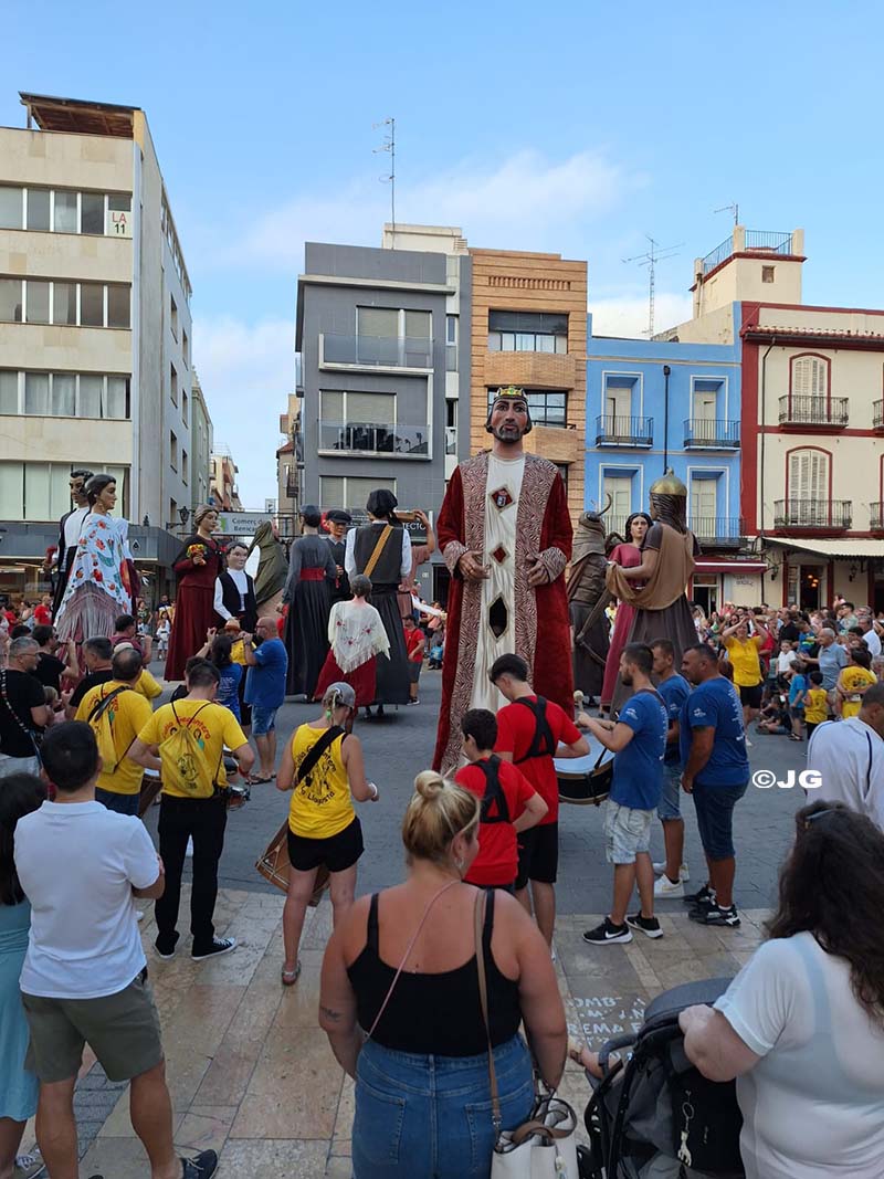 Plantada de gegans i cabuts al carrer València i seguidament cercavilla de gegans i cabuts pels carrers: València, Hernán Cortés, Pius XII, Crist de la Mar, Rey en Jaume, Verge del Pilar i Pl. Sant Bartomeu.